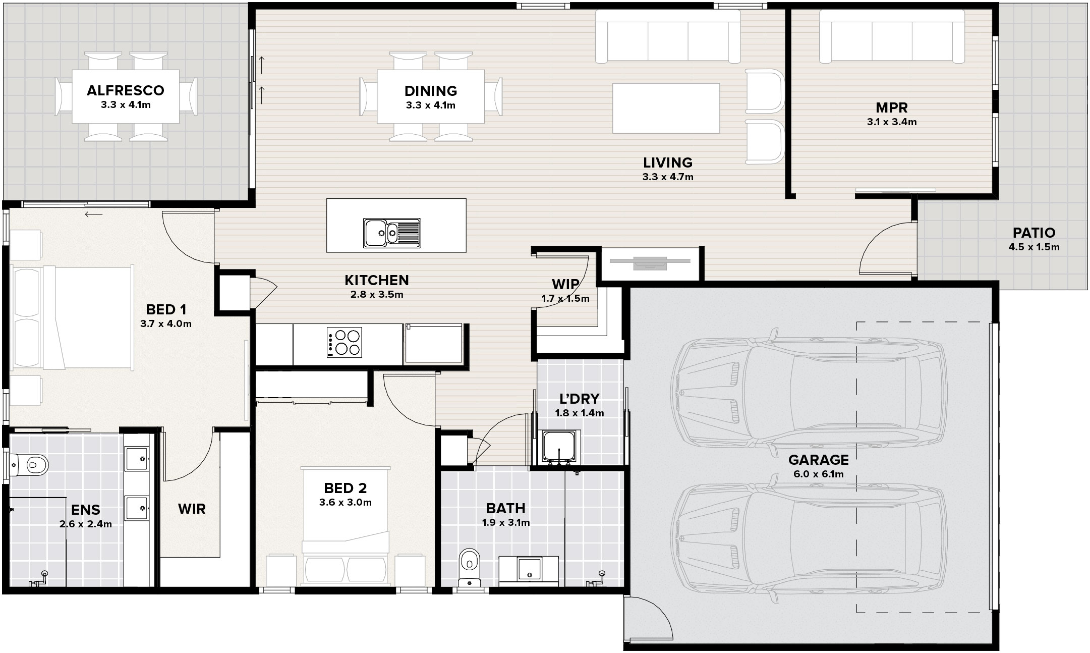 Open-plan layouts and alfresco areas